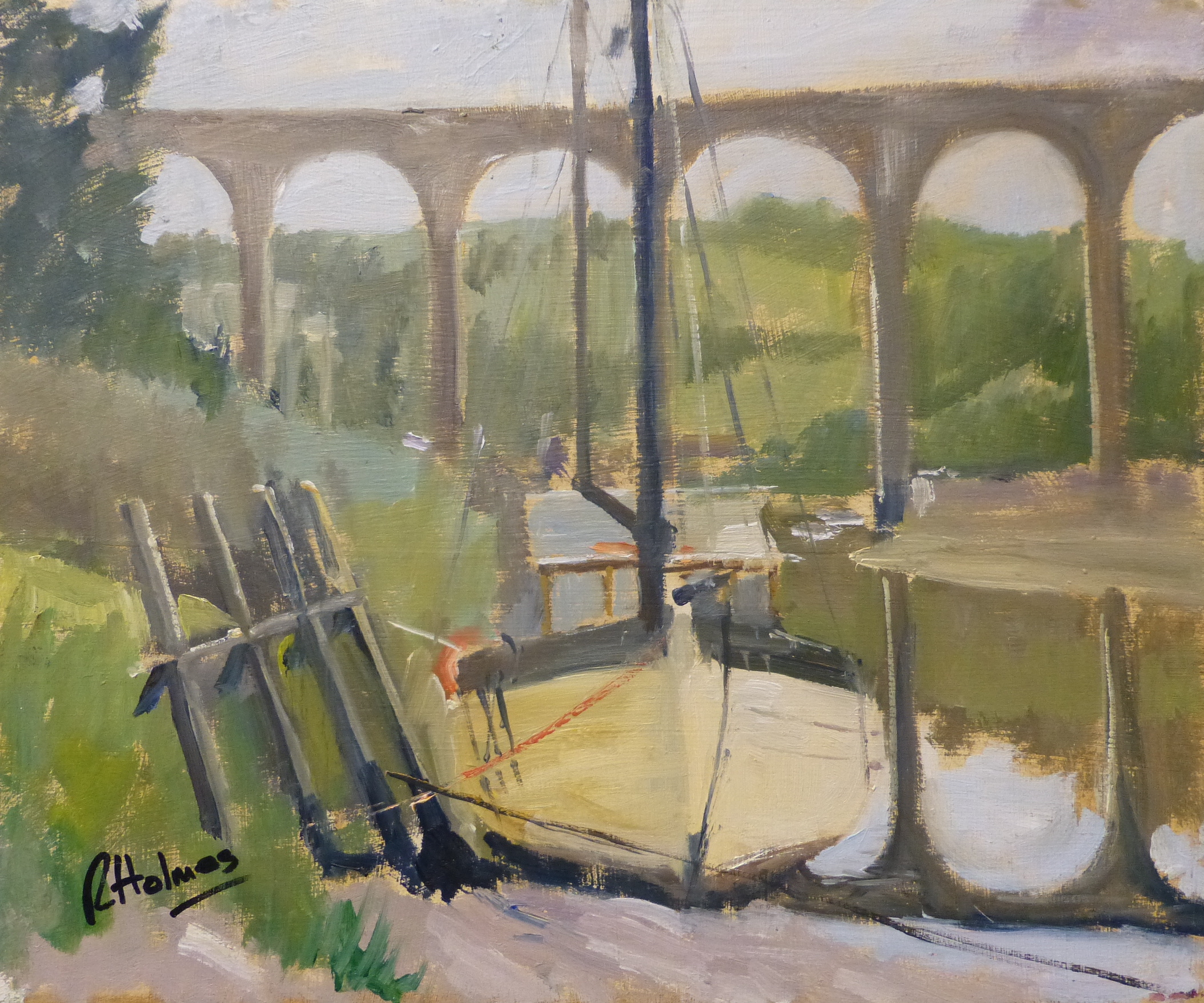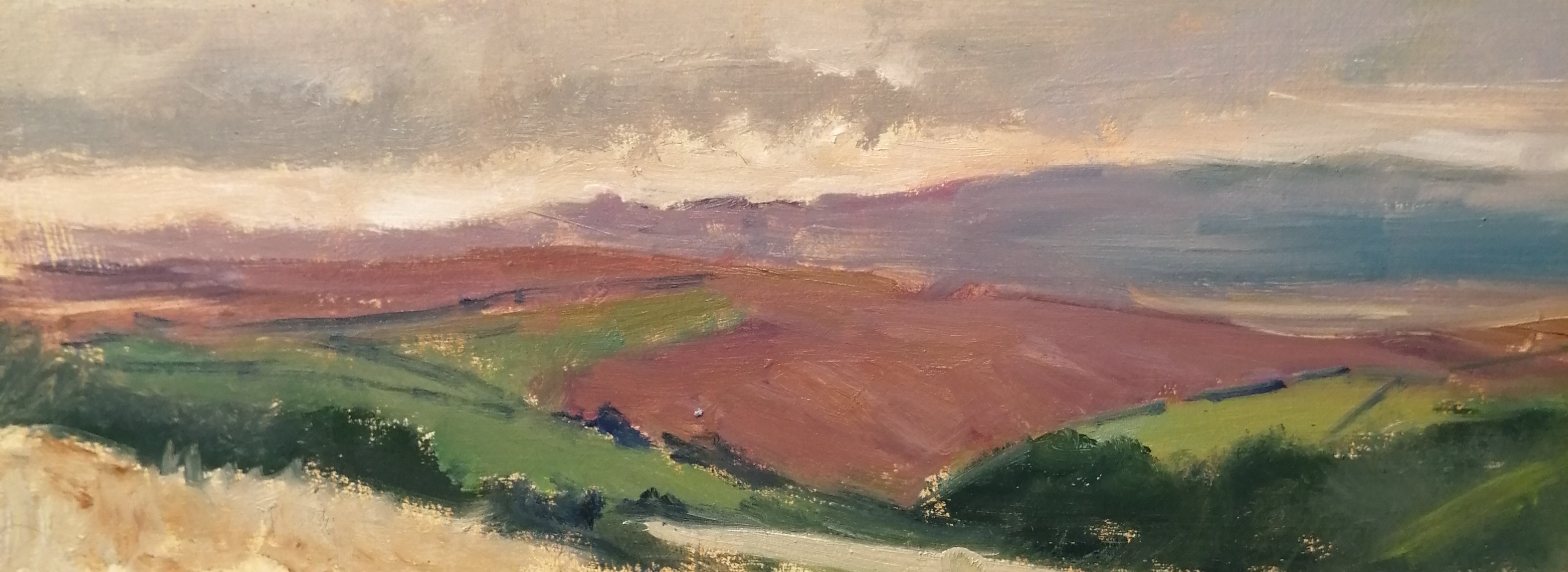 My self and Rosemary Miller have recently returned from Dulverton ,Somerset after organising the first ” house party” painting week. There was no tuition and the 14 painters went out and found their own subjects before returning and eating the most wonderful food prepared by a local caterer. Here are some of my paintings