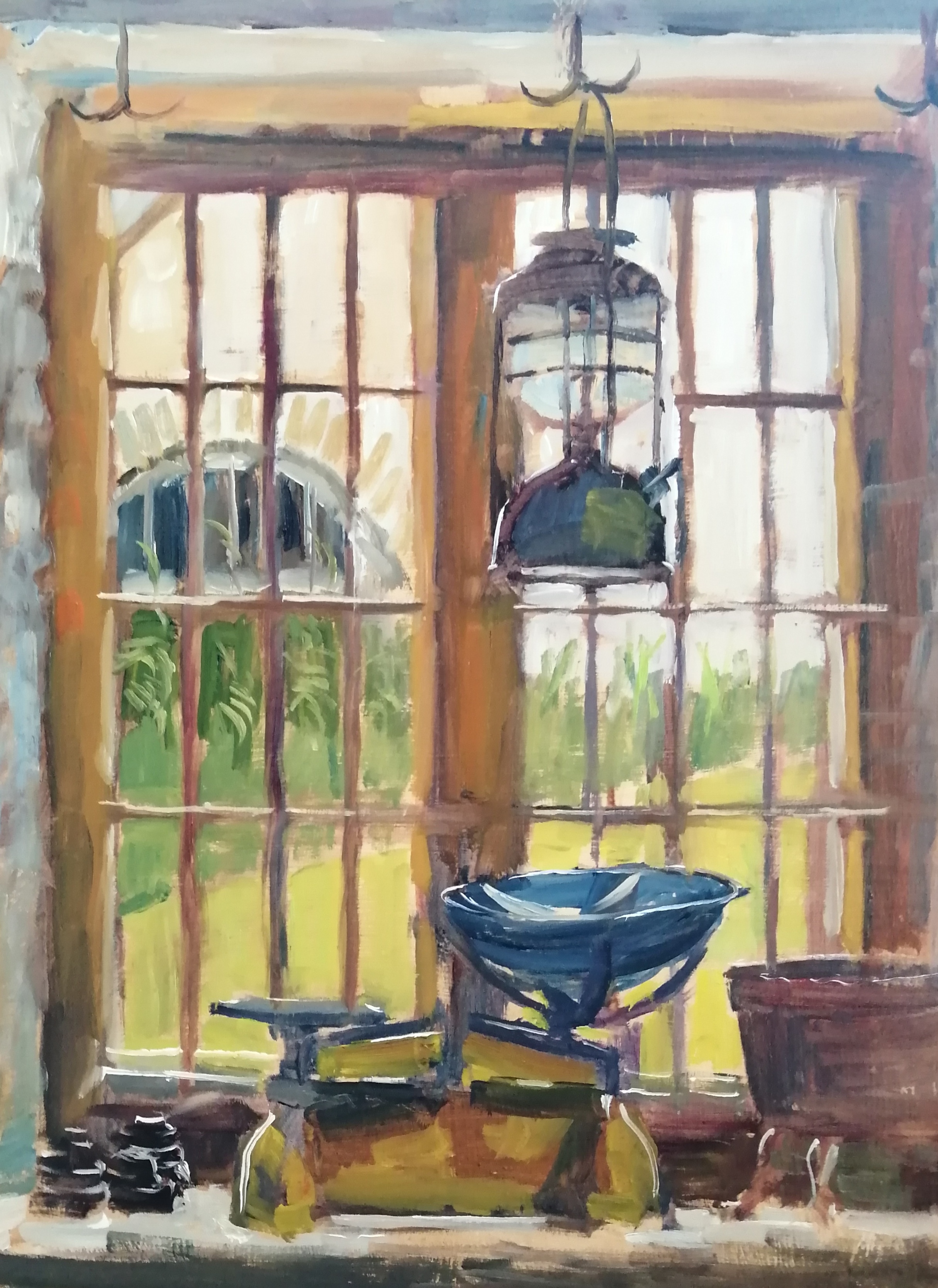 The Art Societies of Alton , Arlesford and Fleet were invited to paint at the Heritage railway that runs from Alton to Arlesford in Hampshire. Whilst we endured thunderstorms I was painting in one of the sheds. A grand day out